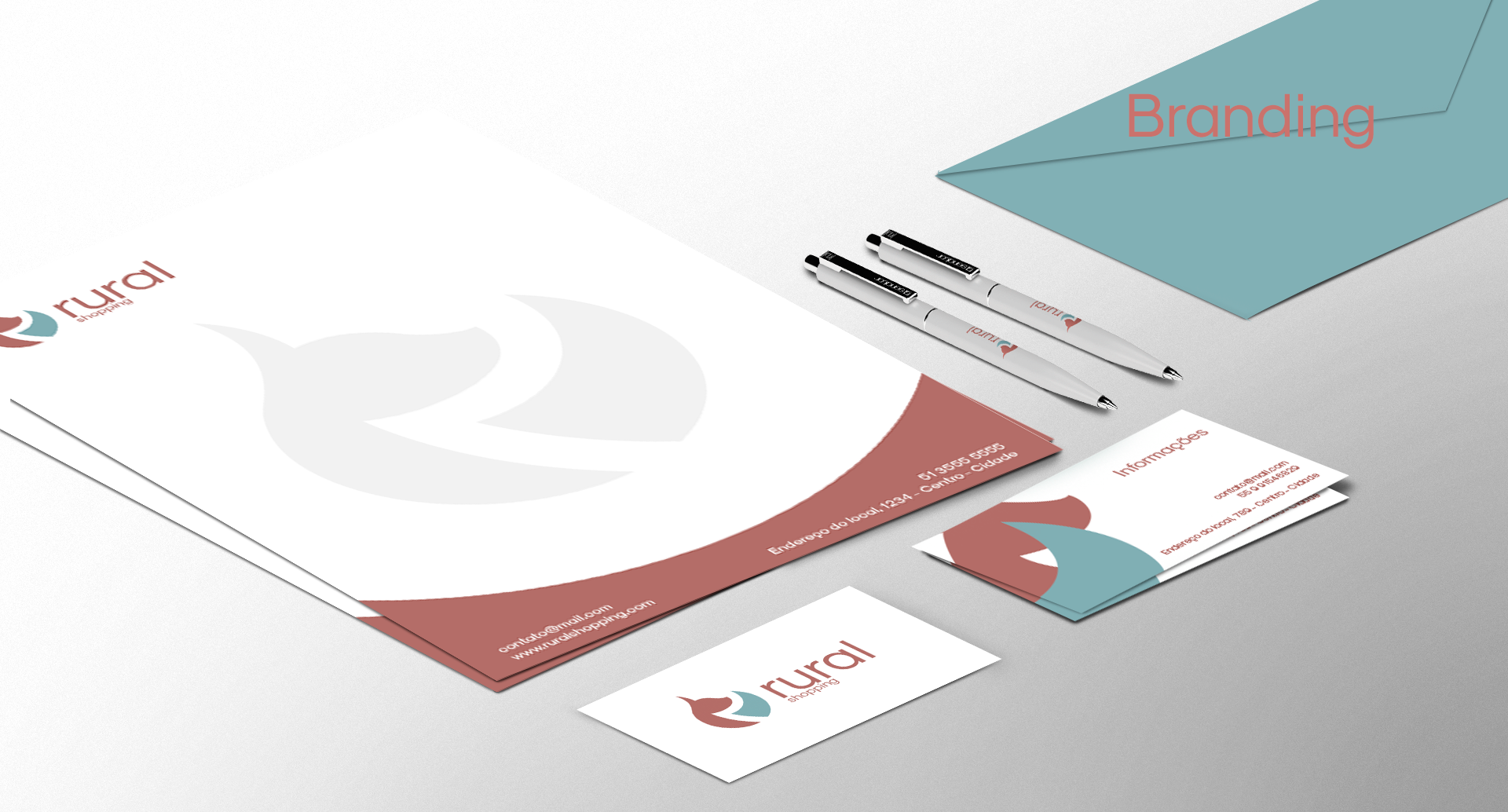 Projeto de identidade visual para a empresa Rural Shopping em atividade na empresa S.A. Marketing.